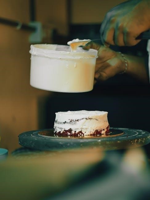 The Cuisinart Ice Cream Maker instruction manual inspires creativity with advanced and unique flavor combinations. Beyond classic recipes, it encourages experimenting with ingredients like matcha-green tea, balsamic strawberry, or pistachio-cardamom. These innovative flavors allow users to craft distinctive and sophisticated ice creams. The manual provides tips for infusing liquors, layering flavors, and incorporating mix-ins such as caramel swirls or crushed nuts. It also suggests pairing unexpected ingredients, like goat cheese with figs or honey with lavender, for a gourmet touch. With these ideas, users can elevate their ice cream-making skills and create one-of-a-kind desserts. The guide emphasizes the importance of balancing flavors and textures to achieve professional-quality results. Whether you’re hosting a dinner party or exploring new tastes, the manual’s advanced recipes help you push the boundaries of ice cream creativity.